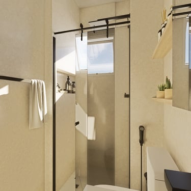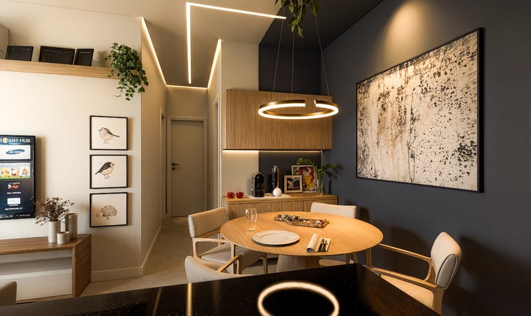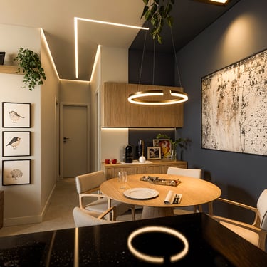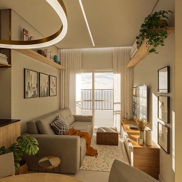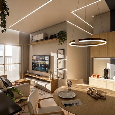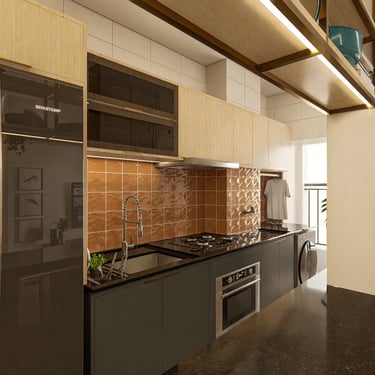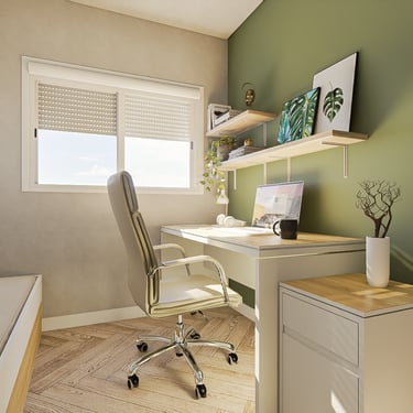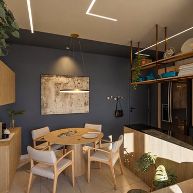 Um apartamento com pintura branca, revestimentos simples nas áreas molhadas e no restante o contrapiso cru, como entregam usualmente as construtoras. Recebemos esse projeto da maneira que a cliente recebeu o imóvel, como uma tela em branco pronta para ser colorida. Em com uma cor marcante setorizamos a entrada, área de jantar e cantinho do café. O mesmo tom de pintura une paredes, forro e o interior da porta de entrada. A cozinha e lavanderia receberão uma bancada em granito única, ligando os ambientes e ampliando a área de trabalho.